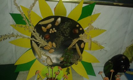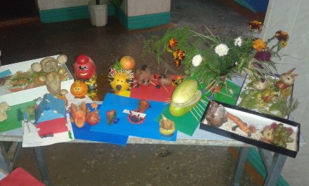Со второй учебной недели в нашей гимназии была организована осенняя выставка творческих работ из осенних даров природы: цветов, фруктов, овощей и шишек.