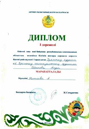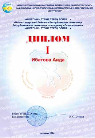 С 5-10 ноября 2014 года в городе Алматы Национальным научно-практическим образовательным и оздоровительным центром «Бобек» с целью нравственно-духовного образования детей проводилась Республиканская олимпиада по предмету «самопознание» среди учащихся 7-9 классов, в которой приняла участие ученица 9 класса Хромтауской Гимназии №2, призер областной олимпиады Ибатова Аида.