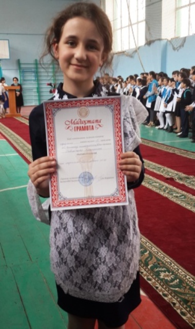- Абдуалиева Аян – 2 место по истории (учитель Фраер И.И.)