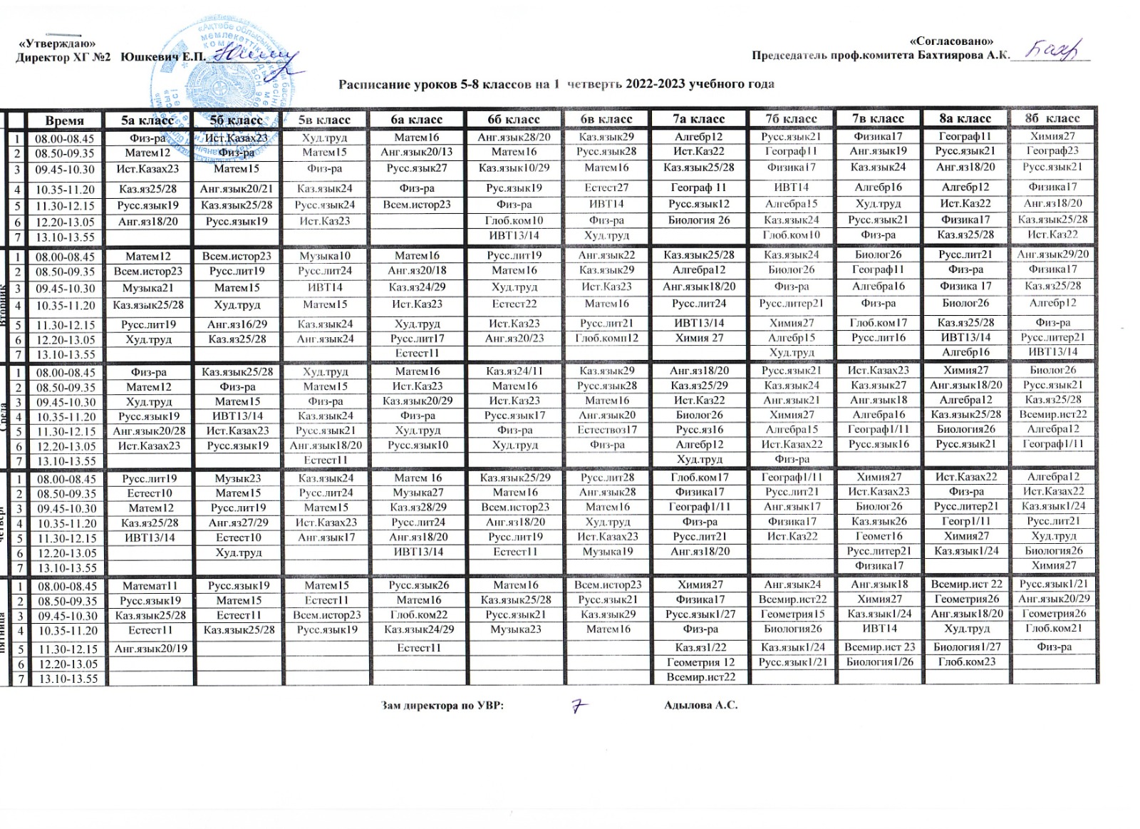 2022-2023 оқу жылына 5-11 класстардың сабақ кестелері