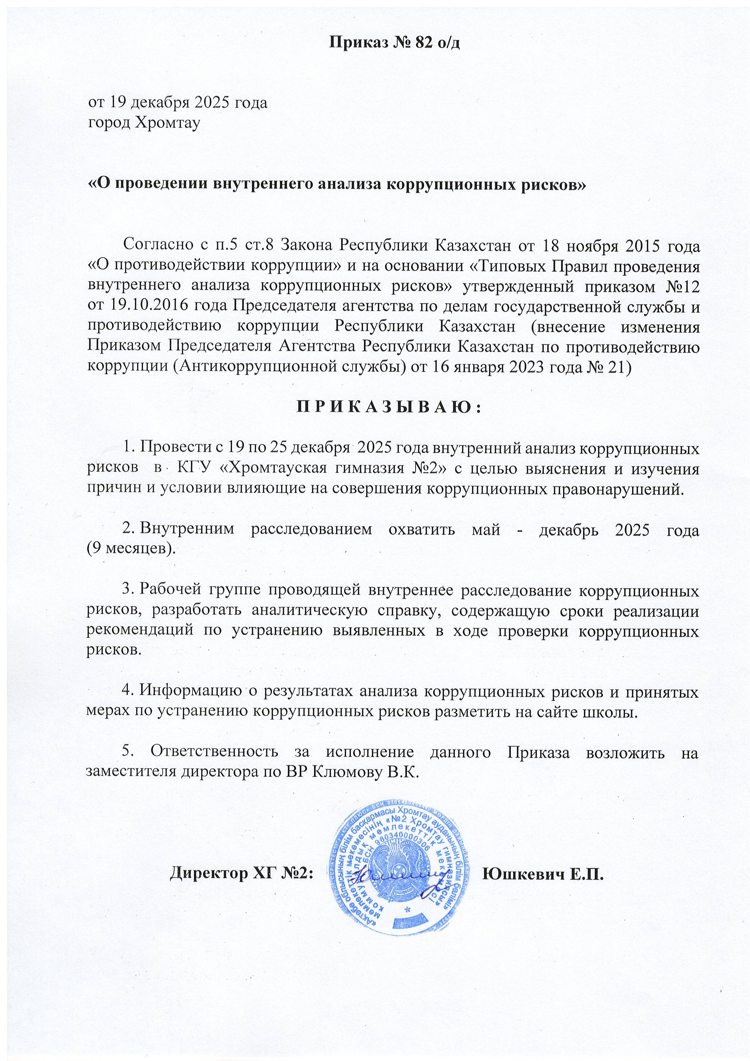 Сыбайлас жемқорлық тәуекелдеріне ішкі талдау жүргізу туралы бұйрық 19 желтоқсан 2025 жыл
